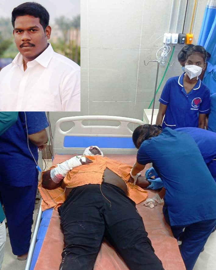 திருவள்ளூர் நகர கவுன்சிலர் மகனுக்கு அரிவாள் வெட்டு : மாவட்ட அரசு மருத்துவக் கல்லூரி மருத்துவமனை எதிரில் மருந்து கடையில் நடந்த சம்பவத்தால் பொது மக்கள் அதிர்ச்சி :