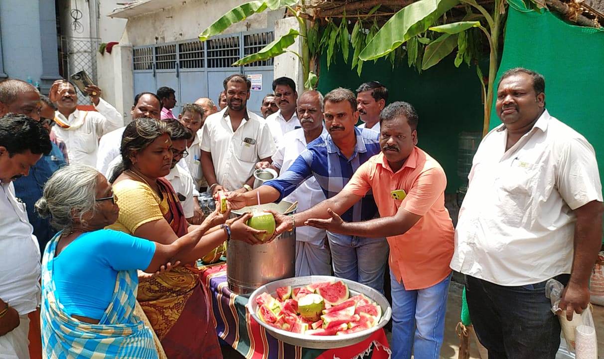 திருவள்ளூர் வீரராகவர் கோவில் வளாகத்தில் தமிழ்நாடு திருக்கோவில் தொழிலாளர்கள் யூனியன் வீரராகவ சுவாமி திருக்கோவில் கிளை சார்பில் நீர் மோர் பந்தல் திறப்பு