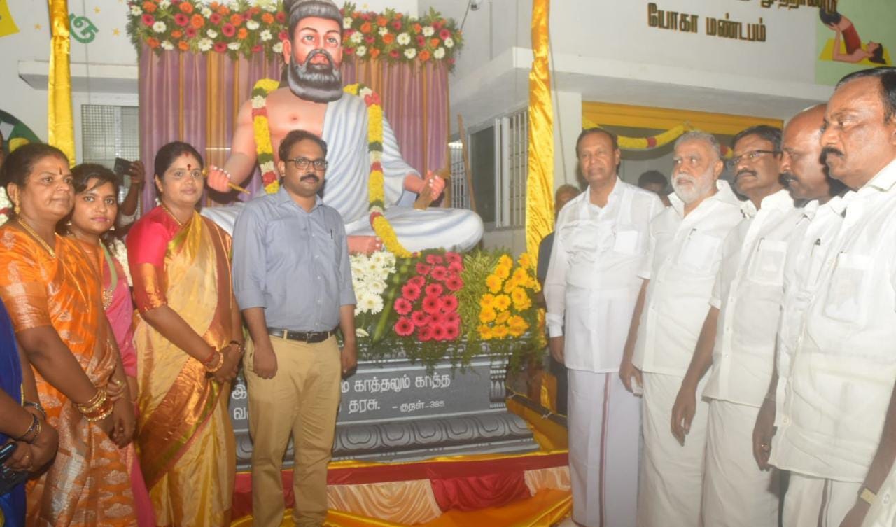 திருத்தணி சதாசிவ குளம் மையப் பகுதியில் 23 அடி உயரத்தில் அமைக்கப்பட்ட தியானேஸ்வரர் சிலைக்கு மகா கும்பாபிஷேகம் :