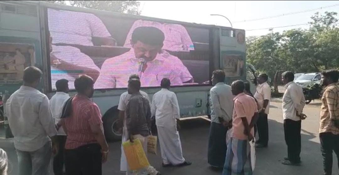 தமிழ்நாடு சட்டப்பேரவையில் நடைபெறும் செய்தி மக்கள் தொடர்பு துறை உள்ளிட்ட பல்வேறு துறைகளின் மானிய கோரிக்கைகள் குறித்து காணொளி நேரலையாக திருவள்ளூர் மாவட்ட ஆட்சியர் அலுவலக வளாகம் மற்றும் திருவள்ளூர் பேருந்து நிலைய வளாகத்தில் உள்ள செய்தி மக்கள் தொடர்பு துறையின் அதிநவீன மின்னணு வீடியோ வாகனம் மூலம் பொதுமக்களுக்கு திரையிட்டு காண்பிக்கப்பட்டது